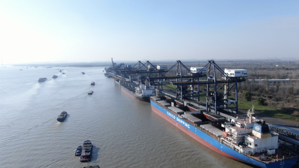 據(jù)了解,南京西壩碼頭位于長江北岸國家級重點化工基地——南京化學工業(yè)園區(qū)內(nèi),是南京市江北地區(qū)唯一的5萬噸級以上散貨碼頭,港區(qū)內(nèi)公、鐵、水路匯集。岸線總長1330米,擁有1個5萬噸級、4個7-10萬噸級散貨泊位,設(shè)計年接卸能力3000萬噸,吞吐能力5000萬噸,陸域堆場面積83萬平方米,一次性煤炭堆存量可達300萬噸。